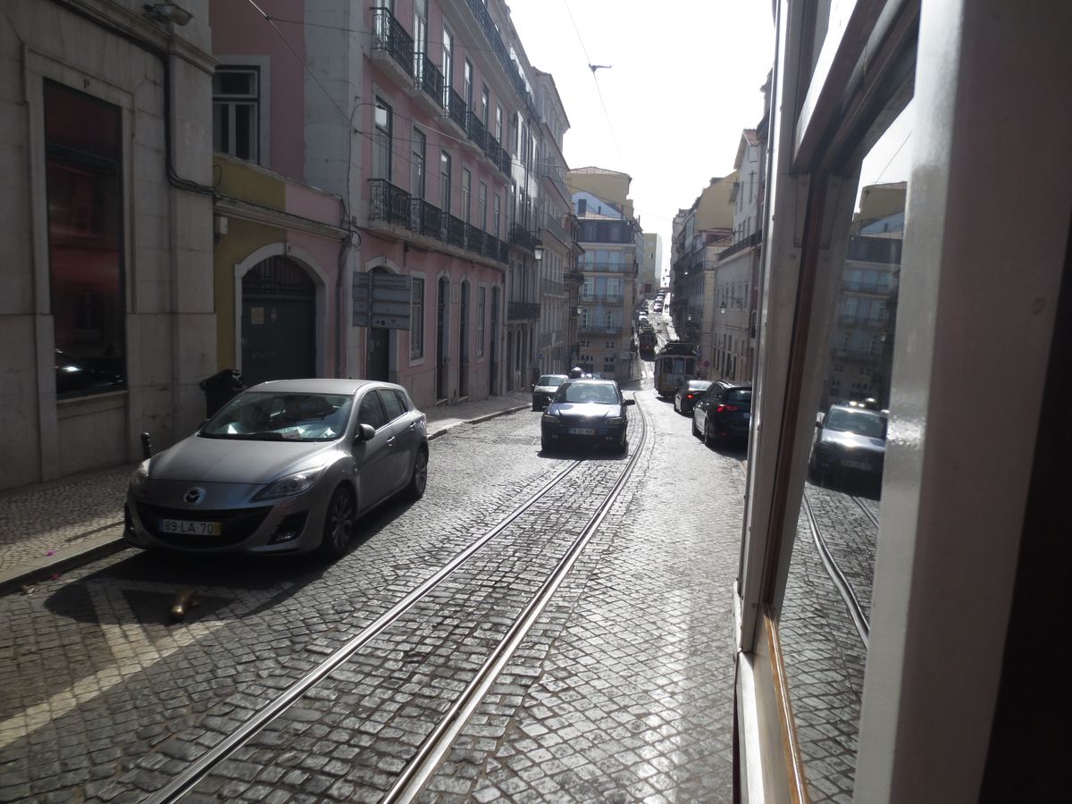 特にサン・ジョルジェ城近くの乗り場周辺は、道路が渋滞していて、いつトラムがやってくるのかという状況です。