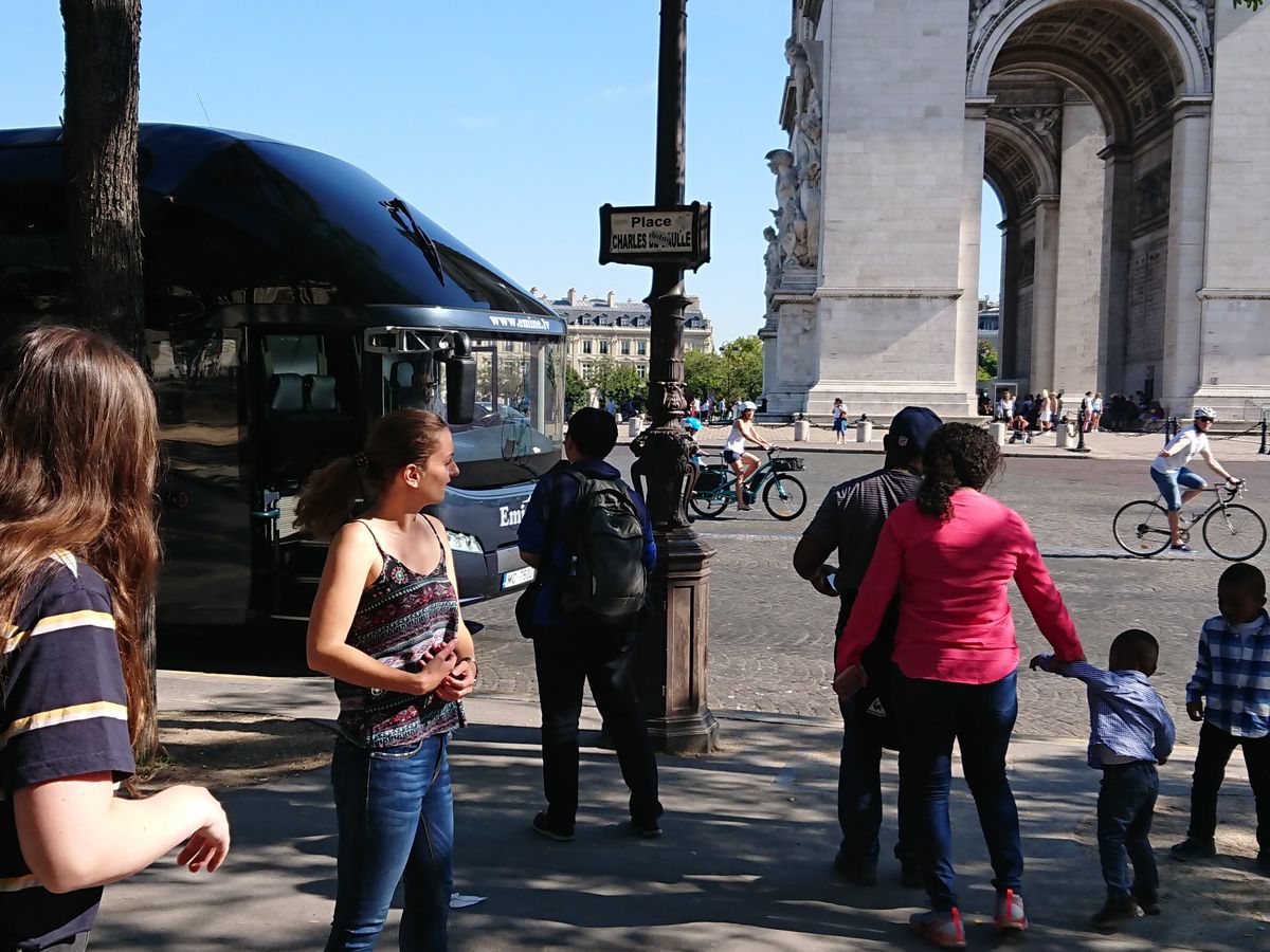 パリ北駅で美しいセシル添乗員と合流、この駅の周辺は危ないからと早足で展望席ぽいツアーバスへ。添乗員から置き引き、スリについて注意事項を聞いて市内観光。