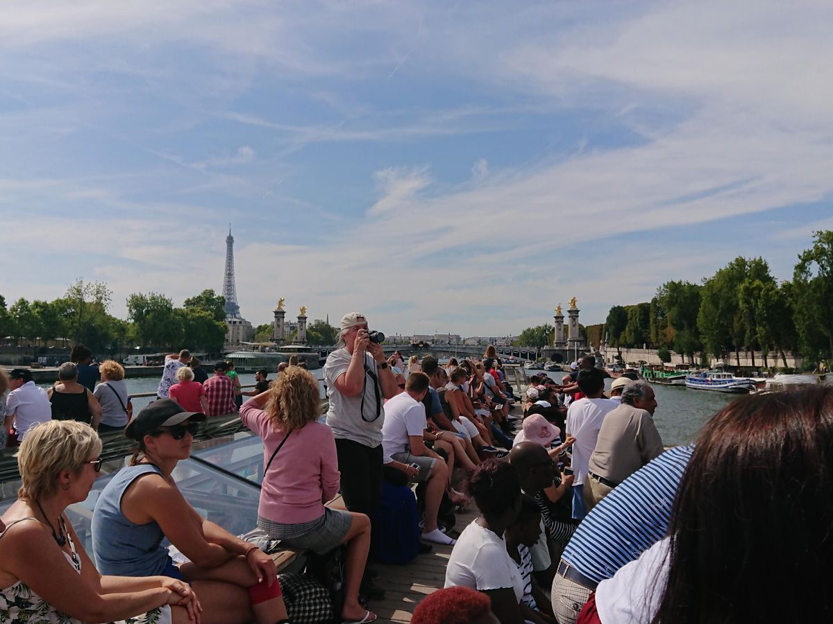 いよいよエッフェル塔へセキュリティーチェックを2回うけて入場(ここで注意、8月末なのに日差しが強く、気温27℃ 2回目のセキュリティーチェック待ちが長く熱中症へ・・・水と帽子は必需品)、2階までエレベーターパリを一望・・・so beatiful !! (手荷物には南京錠も含む金属類やプラスチックのくしはXです)・・・集合場所(meeting point)へセシルが見当たらない! 同じツアーのメキシコのお母ちゃんを見つけて一安心。