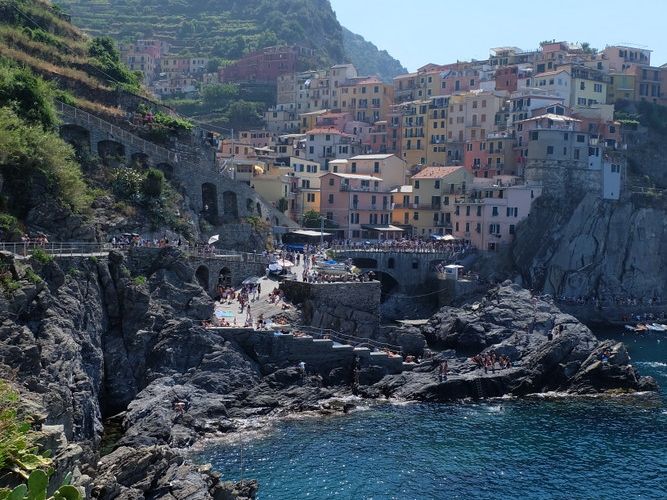 イタリアの世界遺産にこんな素敵な可愛い村があったなんて!というのが実際に行って思った感想です。美術品、歴史的建造物もいいですが、チンクエテッレは見応えがあります。ツアーにランチ以外全て組み込まれているので、楽に観光できます。世界遺産で海水浴なんて信じられないような経験も出来ました。日焼け止め、サングラス、水着、タオル、敷物、あと虫よけと虫刺されの薬を持って行くのをお勧めします。このツアーは申し込み後、即参加が決まるので現地に入ってから天気予報を確認してから申し込むといいと思います。シャッターチャンスが沢山!テーマパークの中かと思うほどかわいい村々。是非訪れてみて下さい。おススメです。