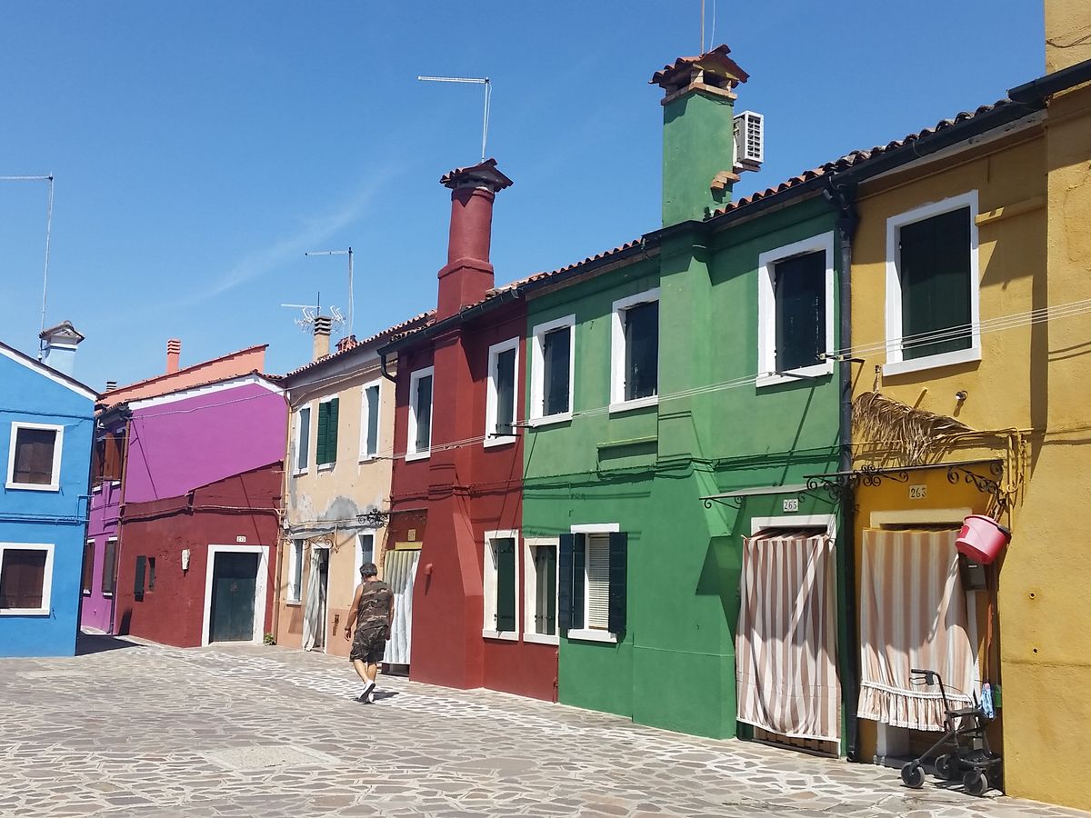 ムラーノ島では、始めにガラスの実演がありますが、それを見た後は、お土産やさんを通過して、街の方に出ました。ガイドさんは、船の集合時間を告げて、後は自由行動です。ブラーノ島では、他のツアーも昼をとるので、レストランが混みます。着いたら先にレストランへ入って、食べてから家の見学にいくといいと思います。家を見ながら奥の方のレストランへ行き、帰りは又ゆっくり見ながら帰ってくるといいと思います。イカスミパスタや手長海老が美味しかったです。サンドイッチ等で軽く済まして散策でもいいかもしれません。帰りの船は、サンマルコ広場まで1時間かかります。短い滞在時間ですが島も、大きくなく見るところもこじんまりしているので十分でした。気に入ったら個人で又行くとよいと思います。