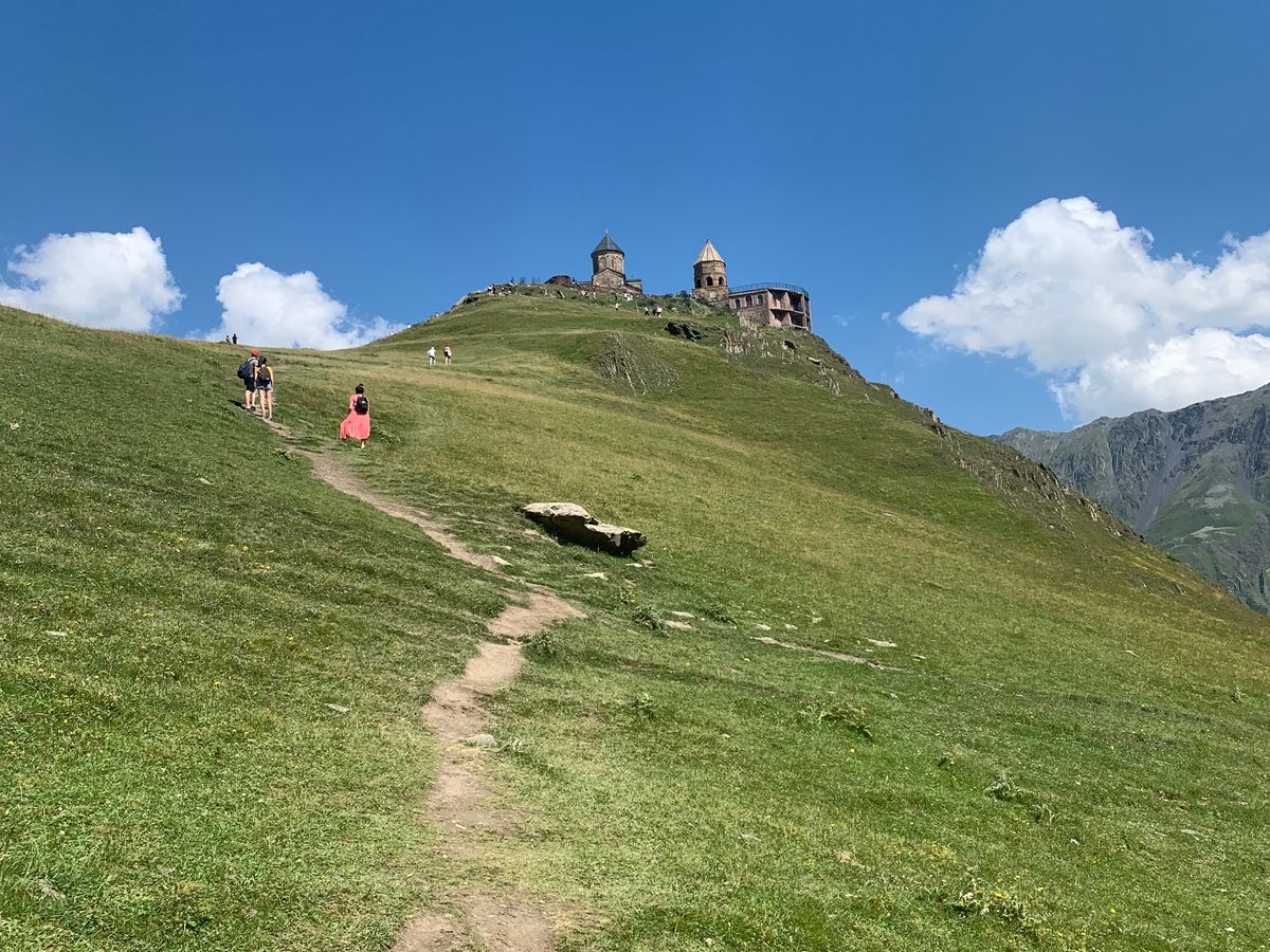 ステッパンツミンダ教会を目指して、往復3時間のハイキングをしました。最初かなり道が険しく苦しくて後悔しましたが、ガイドさんに励まされ何度も休憩して、登り切った後に眺めた景色は本当に忘れることができません。