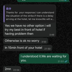 口コミがない中での予約で不安でしたが、無事に送迎していただきました。予定の時間より到着時間が遅れ、荷物の受け取り等で遅くなってしまいましたが、whatsAppで翻訳アプリを使って連絡。お互いの居場所を写真付きで送ってドライバーさんに会う事が出来ました。市内までは道が混んでいました。