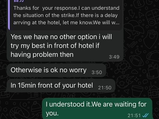 WhatsAppさえ使いこなせたらなんの不安もありません。グループ旅行の方、荷物の多い方などは安心してお願いできると思います。