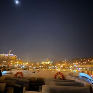 くさり橋近くから出港し、川上川下の両方向へ往復して戻ってくるルートです。景色は川岸からでも見えますが、より低い視点から見上げることで、建物の大きさや丘の高さを感じ、また水面に反射する光を楽しむことが出来ます。くさり橋を真横や真下から見ることもできます。ライトアップは夜10時までなので、それまでにどこからの観賞を優先するか考えて、このクルーズをスケジューリングするべきと思います。
