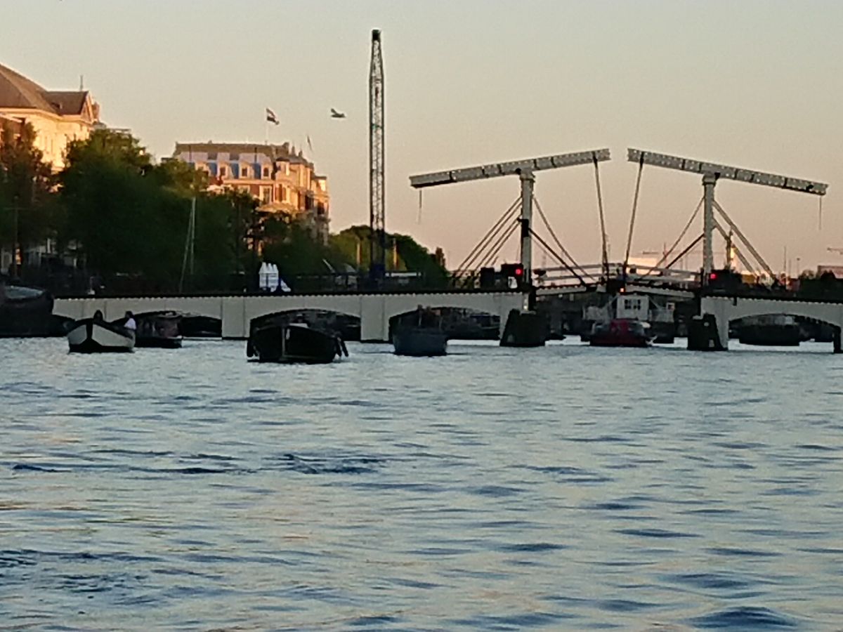 アムステルダムと言えば、運河・風車・チューリップのイメージが強いのは、約50年前に見た映画「風車のある街」の影響が大きい。今回の海外旅行基本ツアーがドバイ・ロンドン・パリだったのを、1日追加してアムステルダムに寄ることができた。この運河クルーズは、長年の夢を叶える中心的なツアーでした。ツアーは朝一番の10:00発に乗り、ゆったりと座れました。街中を覆う川幅もまちまちな運河を縦横無尽にすいすい運行してました。バックも進行と同じ位のスピードで運行できてました。アムステルダムには1500以上の橋があり、船の高さも低めに統一され、四方がガラス張りで見晴らしは良かったです。古い町並みから近代ビル、水上生活する人達や、はね橋も見ることができました。75分の長めなツアーでしたが、変化が多くあっという間に回れました。