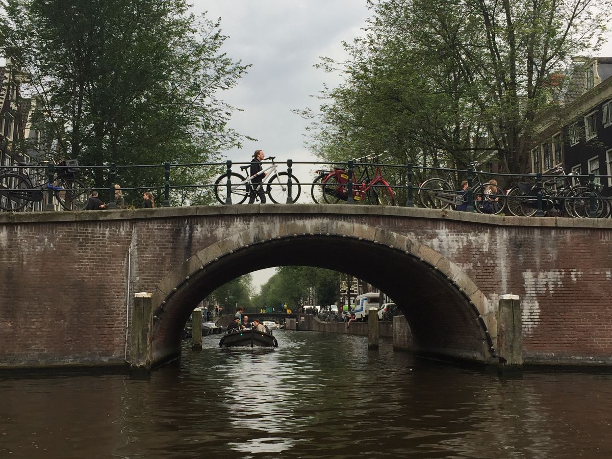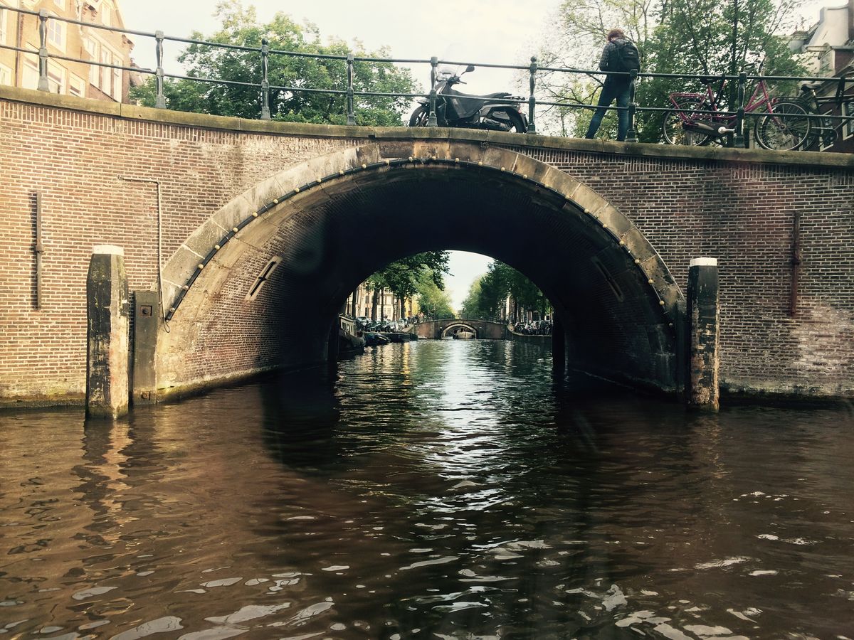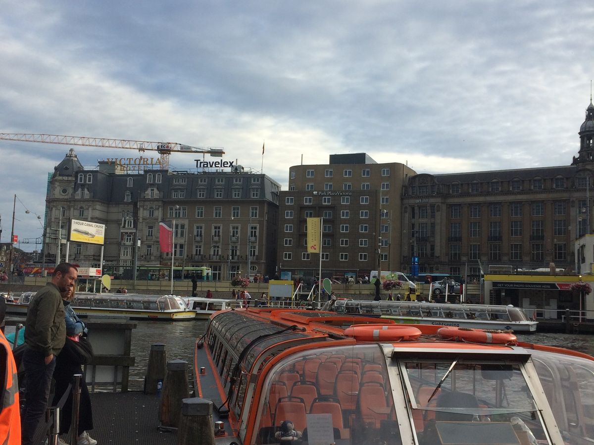 あいにくの天気だったので、最高の景色とはいきませんでしたが、アムステルダムは運河のまちなんだなということを実感できます。少し低い位置から見る街並みもなかなかいいものです。