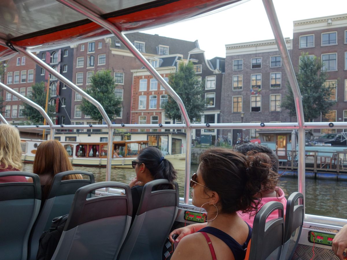 自転車の往来が多く天気がコロコロ変わるアムステルダムを、安全で効率良く見て回れるので、お勧めのお助けツアーです。くっついて立ち並ぶ建物や豪商の家、居住用のボートなど、日本語オーディオガイドで説明を聞きながら、1時間の間に沢山見ることが出来て良かったです。船長さんもサービス精神旺盛でした。