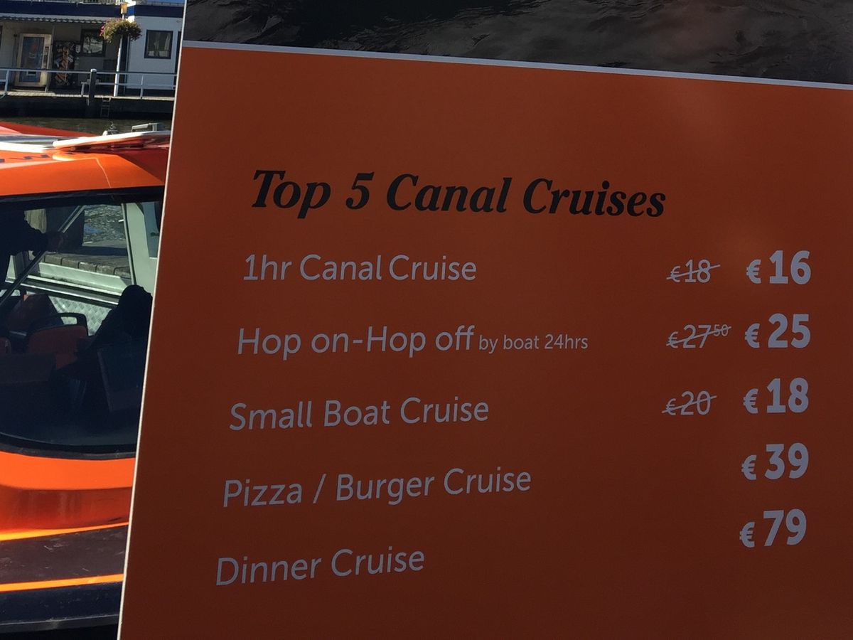 2つ目はこのツアーの価格。写真にアップしたとおり、乗船場に常設してある看板は、常に€16となっており、それは時期限定というよりも常にそのような表示をしている類でした。今現在もベルトラで2016/03/21 - 2016/10/30は€18で売っていますが、10/6に行き、撮影した写真のとおり現地では€16で乗船できます。
