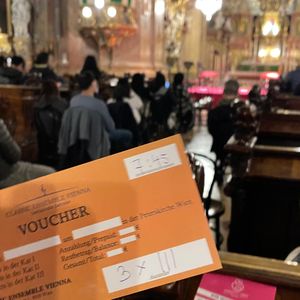 2025年10月24日に参加。A席で申し込み当日S席にアップグレードしてもらえたのは良いところ。観客参加型の音楽会として、楽友協会のあのホールで音楽を聴けたということもあり、とても楽しめました。ただし音楽の質的にはどうかなと思いました。あの広さで30人規模のオケでは前から8列目のS席で聴いても音圧不足な感じでしたし、肝心のバイオリンが全然そろってなくて今いちでした。音楽というより、モーツァルトの時代のオーケストラというパフォーマンスを観ているようでした。ウイーンだぞ、という期待感が高過ぎたのかもしれません。