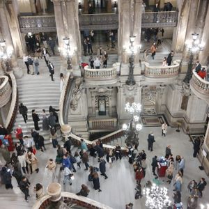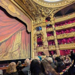 オペラ座ガルニエの建物の正面が工事中でした。中に入るとスタッフが親切に対応してくださりチッケットを頂き入場しました。雰囲気の良い豪華なロビーを堪能した後席につきました。