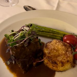 お料理はビーフのスープに頬肉のワイン煮込み、アップルパイで、美味しく頂きました。