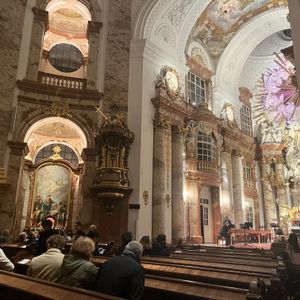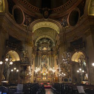 演目は観光客向けです。客層も服装も演者もカジュアルで、気楽に参加できます。逆に日本で錚々たるコンサートを聴いている方には、物足りないかと感じました。指揮者の促しで、観客が拍手で参加する演目が最後にあり、音の反響、一体感が素晴らしかったです。エンターテイメントとして聴きに行くのは、十分に価値がありました。天井や装飾は圧巻です!
