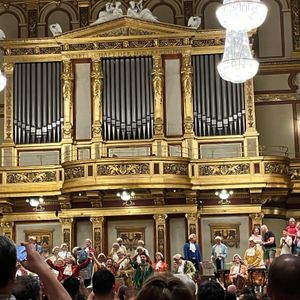 ウィーン学友協会の黄金ホールでの鑑賞でした。ホールは本当に素晴らしく一見の価値ありです。一流の音楽家たちが演奏してきた伝統のあるホールで聴けるなんて、歴史あるヨーロッパならではの体験で、クラシック好きなら夢のようなひとときでした。少し早めに行って、地階で優雅にグラスワインを愉しみ、コンサートへ向かいました。演奏中は撮影禁止でした。私はB席でしたが、ステージもちゃんと見えました。この日は満席で、当日の立ち見もいっぱいでした。ダンスあり、オペラ歌手のソロあり、有名な曲が中心だったので、クラシックをあまり知らない方でも楽しめると思います。