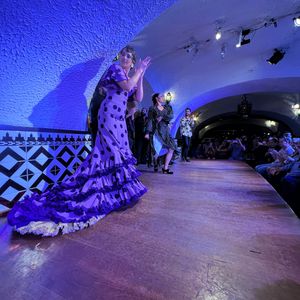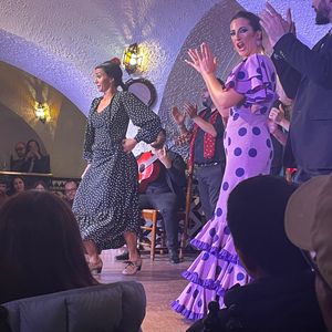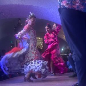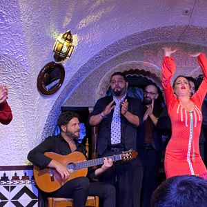 ショーの席は真正面の最後列を案内されましたが、十分迫力を感じましたし、前列よりも全体が良く見えるので良かったように思います。直前に係の人が、ワインやサングリアなど、席まで飲み物を持ってきてくれます。ショーではギターもカンテもダンサーもそれぞれに聞き応え見応えありました。ライブ感があり調和が取れていました。男性ダンサーの方の足さばき(サパテアード)が素晴らしかったです。