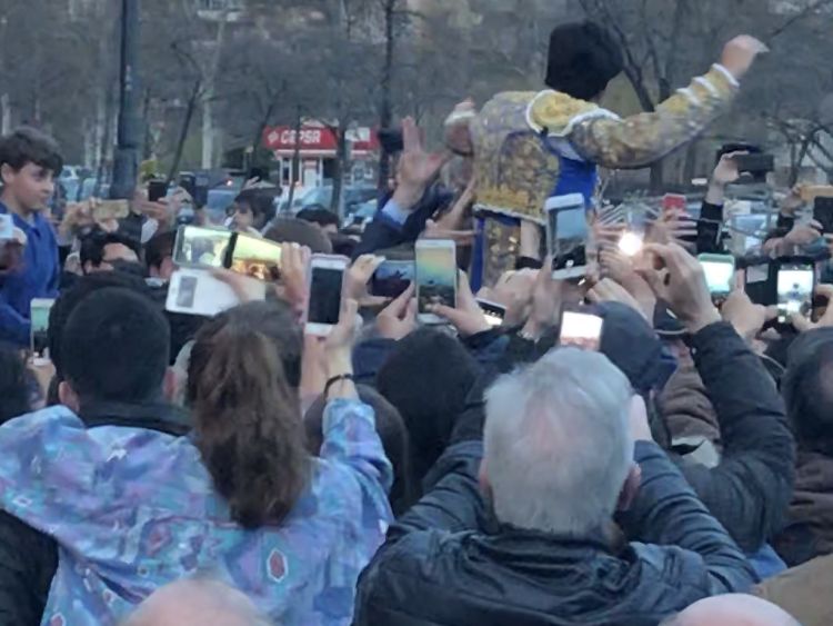 最後に、スタンディングオベーションを受けながら、肩車されて場内一周し、そのまま闘牛場外までヒーロー行進。