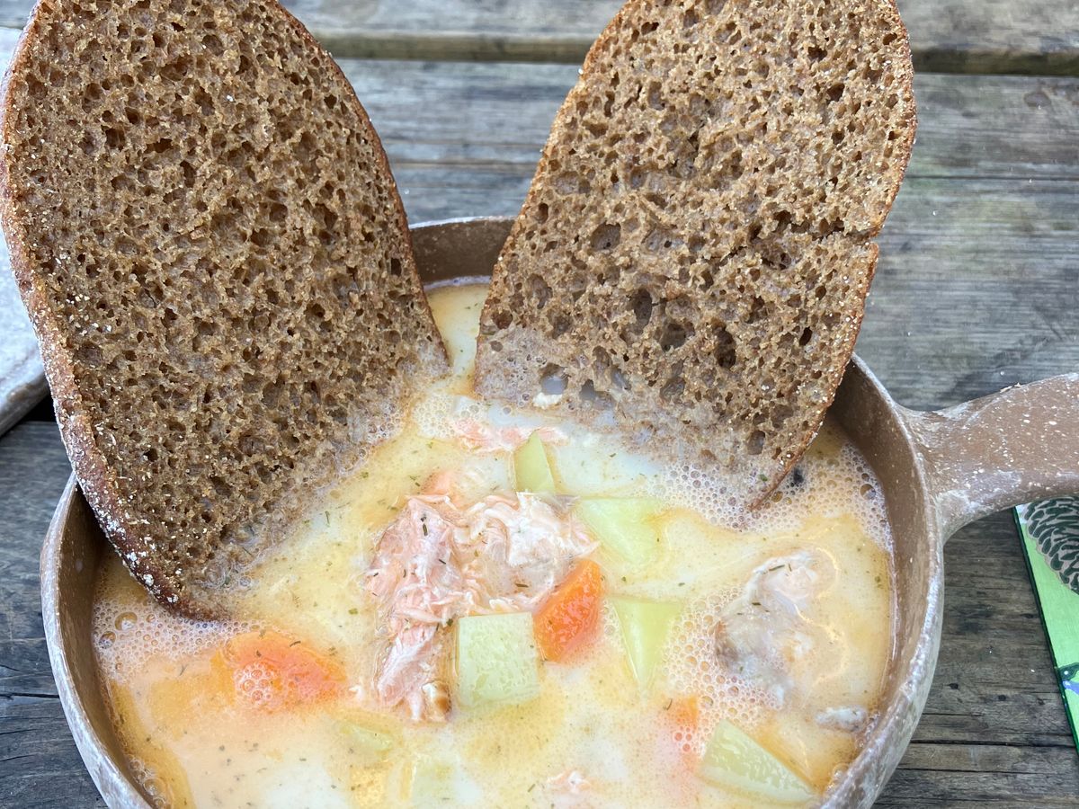 ランチタイムには、ガイドさんお手製の昼食(具だくさんのサーモンスープ、美味しかったです!)を頂きました。