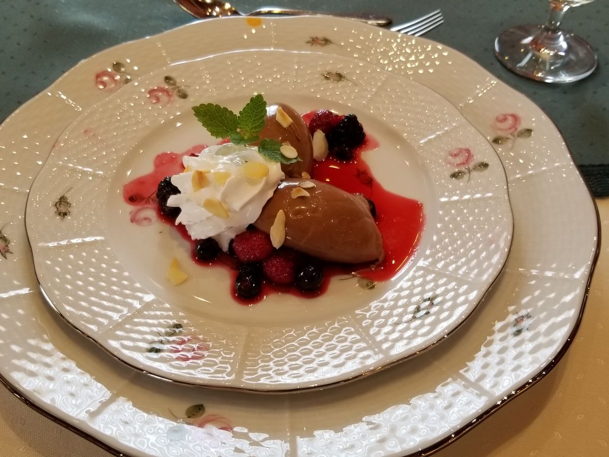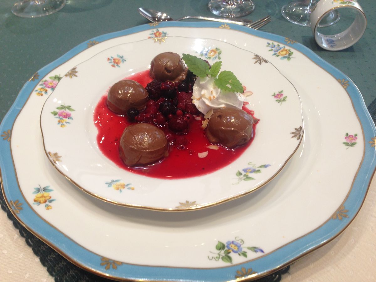 サーモン 白身魚のグリル アイスクリームとブルーベリーなどどの料理も美味しかったです また食器も素敵で‼️