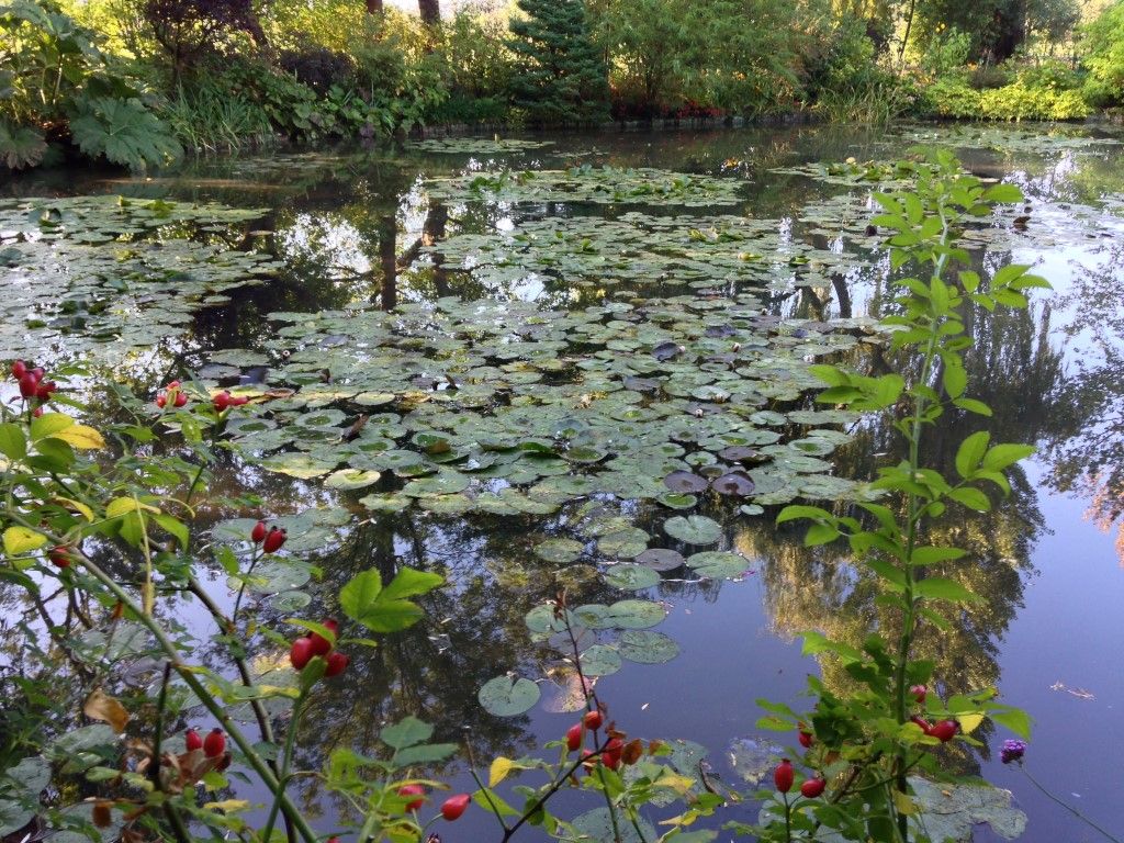 時間が2時間だったので心配していましたが、モネの邸宅も小さいですし十分楽しめました。睡蓮の池もお土産を買ってからもう一度いくと花が開きかけていました。9月でも色々な花が咲いており、睡蓮もあったので良かったです。買ったポストカードには藤の花が橋にかかっていて素敵だったので、違う季節に訪れてみたくなりました。