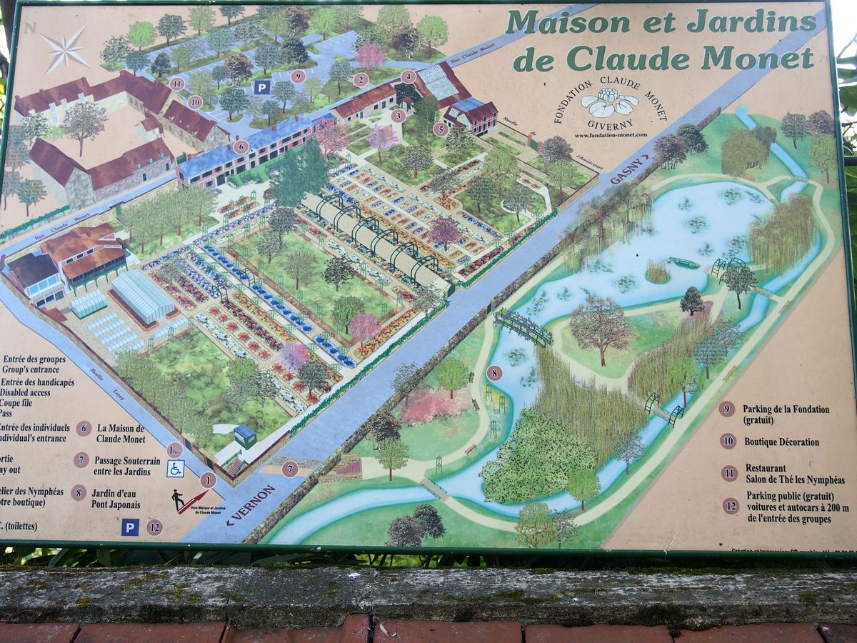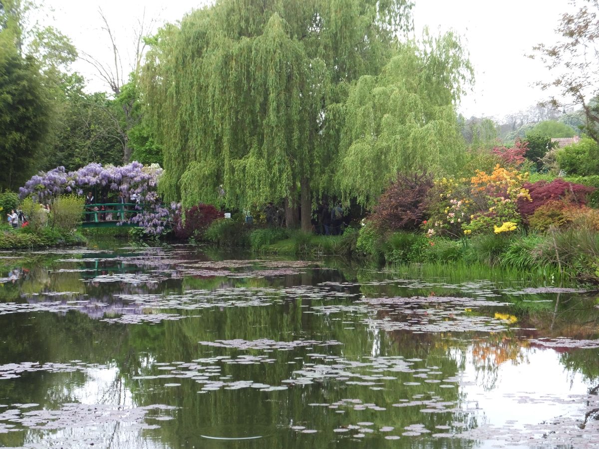 着いた時に、小鳥のさえずりしか聞こえてこない静かでのどかなジヴェルニーの環境に先ず感銘を受けました。睡蓮の池は、その花の咲く時期であったならなお感動が大きいでしょう、でも十分にあの有名な絵が彷彿とする佇まいでした。花が美しく咲き誇る庭を巡った後、モネの家を見学、二階の窓からの庭の眺めも見事です。二階の寝室に飾ってある往時のパリの街の様子を描いた絵などを飽かず鑑賞しました。台所の道具類も興味深いものがあります。