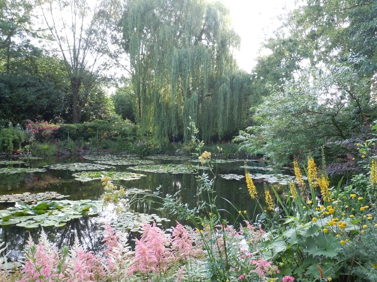 9:15、ジベルニー到着。駐車場から手慣れた様子で、ガイドさんは地下階段から日本庭園に。モネの絵に再三登場する池と柳の風景が目前にあり感動。睡蓮の池の周りの日本庭園には竹や太鼓橋があり、日本へのモネの憧れが集約。その後イングリッシュガーデンに行くも、バラの季節が終わり、少し残念。それでも多くの花たちが咲き誇り、美しい。モネの家は思ったより小ぶり。内部には浮世絵がことのほか収集されていた。 ガイドさんが、モネの絵は、オルセーとオランジェリー、マルモッタンの美術館にほとんどあるというので、マルモッタンへの行き方を教わる。オルセーとオランジェリーはジベルニーツアーにチケットがついたものを選択していたので、帰りに寄ろうといことになる。