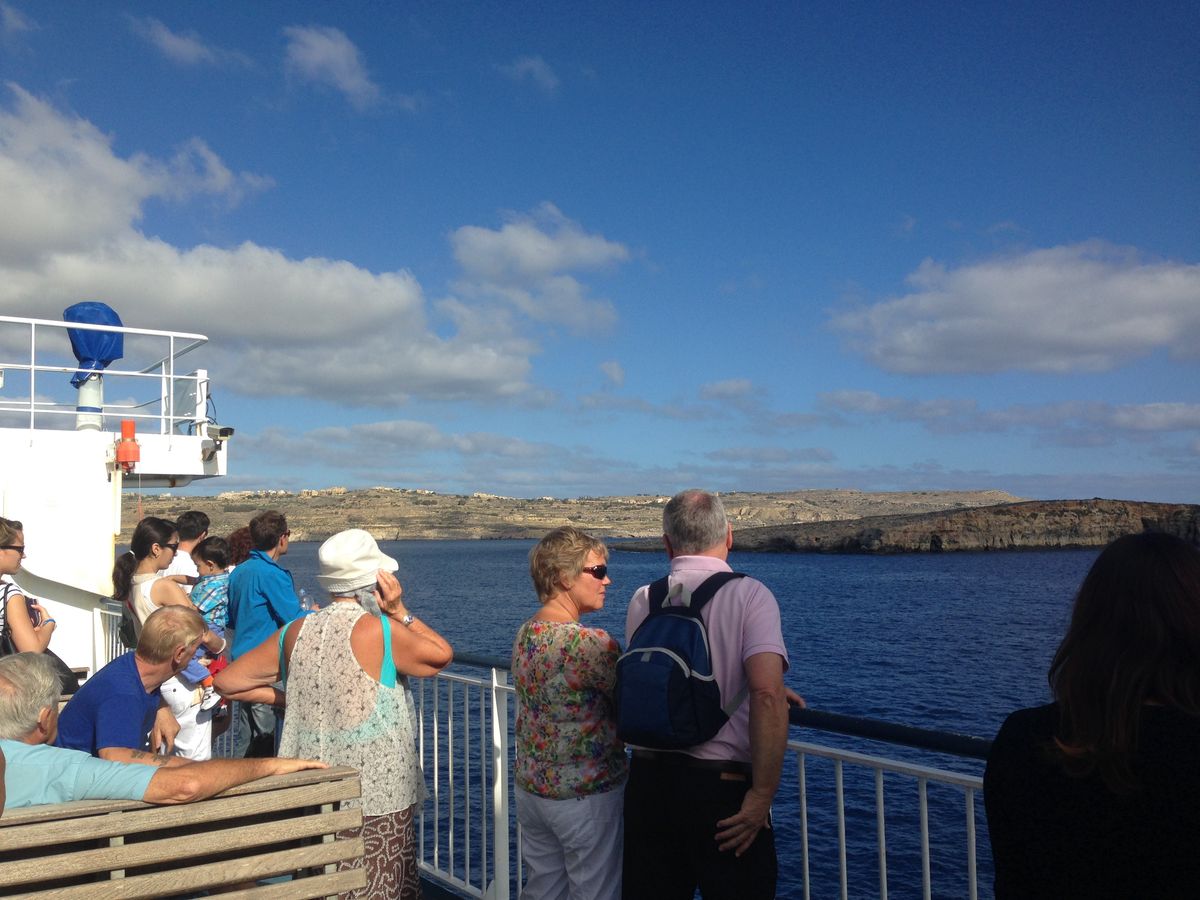 ホテルがあるサン・ジュリアンから船着場までは車で40分程度。ここからフェリーで35分程度でゴゾ島へ。美しいブルーラグーンがあるコミノ島を眺めながらの爽やかなクルーズは、日本の忙しい日々を忘れさせてくれます。フェリー内にはカフェやコンビニもあり、コーヒーを飲んでいる間にゴゾ島に到着です。ゴゾ島のフェリー乗り場がある村は通り過ぎただけでしたが、可愛らしい村でした。