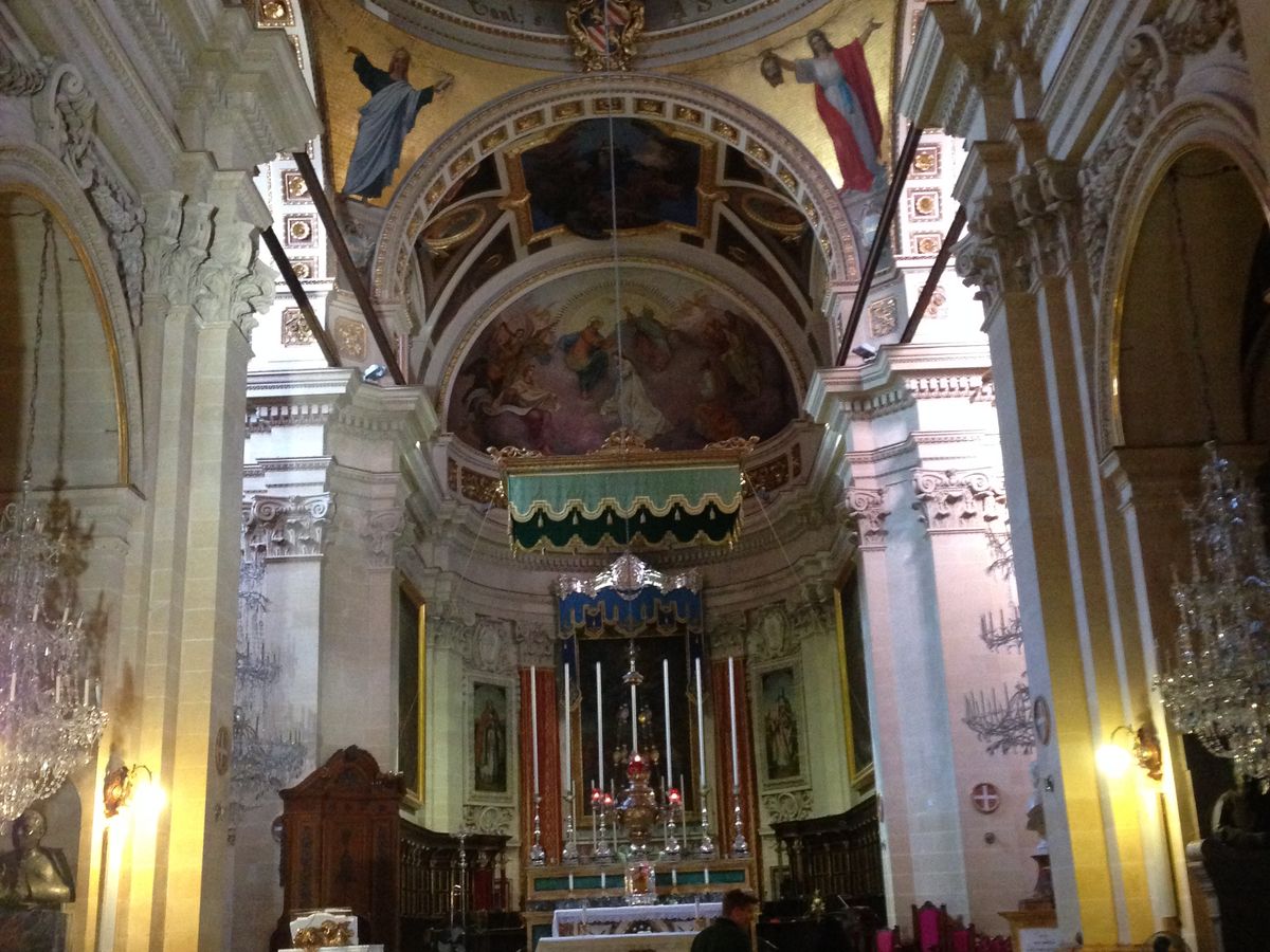 海からの攻撃を避けるため、マルタの昔の街は全て小高い丘の上にあるそうですが、よくもこんな高い城塞を作ったなという立派なもの。城塞の上から壮大なゴゾ島の全景を見渡すことができます。ゴゾ大聖堂はドームを作る時間がなく、有名な画家にドームの騙し絵を書かせたとのこと。本当に騙されます。描くのに7年も掛かったとのことなので、その7年の間にドームを作れたのでは...と言われているそうです。