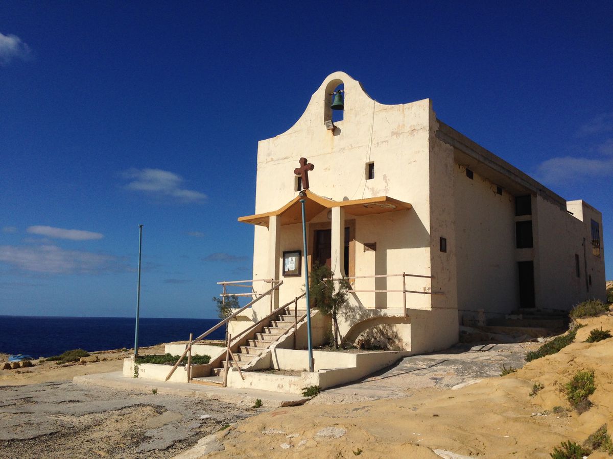 ゴゾ島観光のハイライト。荒波で岩が侵食されて絶景を造り出しています。今も侵食が続き、あと50年以内に確実にアーチ部分が落ちてしまうそうなので、早めに行っておいたほうがいいかも。すぐ横にマルタで一番有名なダビングスポットのブルーホール(岩に囲まれた透明度抜群の海の中の洞窟)があり、たくさんのダイバーがいました。マルタでダイビングなんて、実に贅沢です。駐車場からアズールウィンドウまで徒歩5分程度ですが、その間にある教会が実に良い雰囲気です。