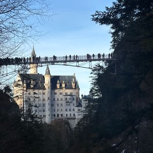 目的地に到着する前にバス内で説明がありますが、帰りのバス出発時間までのスケジュール管理が必要です。城内見学ツアーを希望する方はガイドさんから渡されるチケットの開始時間を見てお城まで移動、徒歩かバス利用で時間も変わります。私の場合は見学時間まで1時間以上あったので、シャトルバスで上がって(片道3.5€)すぐにマリエン橋まで行き写真など撮った後お城まで降りました。お城の近くにはお土産や軽食が買えるところがあります。見学時間に少しでも遅れると入れないので余裕をみて入り口まで行きました。