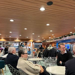 時間帯的にも大変混んでいたのですが、乗船して直ぐにラウンジに入って、食事を楽しみました。軽食とは言え、私達には十分な量で、お酒も楽しみ、すっかりくつろいでいたので、アッという間に到着しました。ラウンジをでたら、沢山の人にびっくり。本当に価値のある船旅でした。