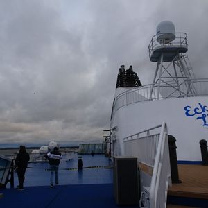 フェリ-待合で軽食を食べてから 早めに並んで乗船 いろんなところにイスやソファ-があるので そのスペ-スを確保した方が良いと思いました。