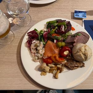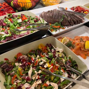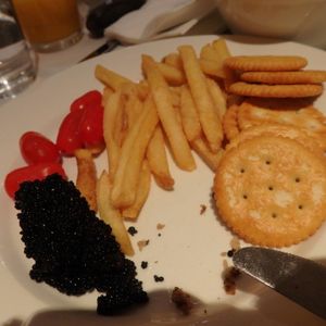 ブュッフェカウンターは3箇所の島に分かれているので、並びの少ないとこ目指して行くと効率的かと。キャビア人気なので、アラカルトは先にかと