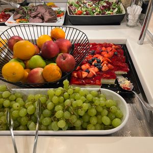 お料理も軽食だけかと思ったいたのに、各種サラダ、フルーツの他、スモークサーモンやローストビーフ、小エビにベリーケーキまで。