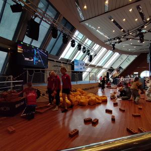 荷物チェックもなくすぐ船内へ移動できました。定刻より早く出発したもです。朝はショップもやっていない所が多く買い物にはむいていません。フリーで使えるスペースへ行くのは出入口階でもないのでちょっと迷うかもしれません。