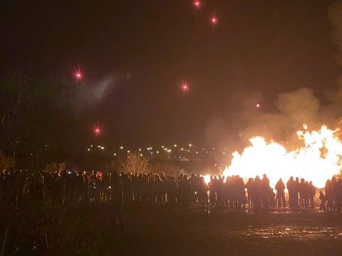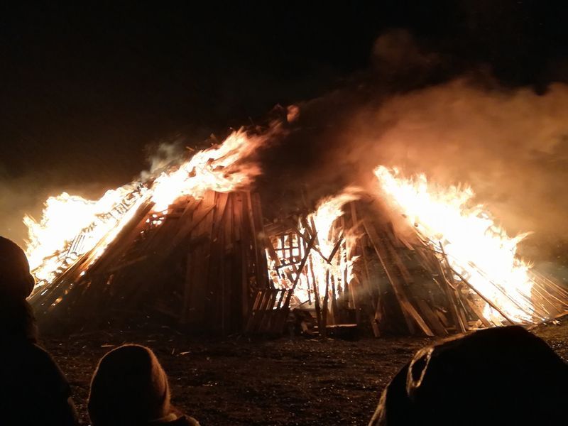 かがり火(Bonfire)の会場では、小さなステージが隅にあり、おそらくバンド(?)が演奏していたのか曲がずっと流れていました。大型バスが何台かあったので、観光客が多いのかと思ったらおそらく地元の人たちもいたようで、ステージからの「みんなで歌おうぜ」的な呼びかけに応じて周りの人たちが歌を歌ってました。英語の曲ではなかったです。かがり火は、もはや火災です。凄い勢いで燃え上がり、風も吹いていたので少し怖く感じるくらいに迫力がありました。