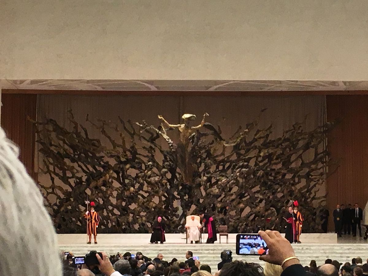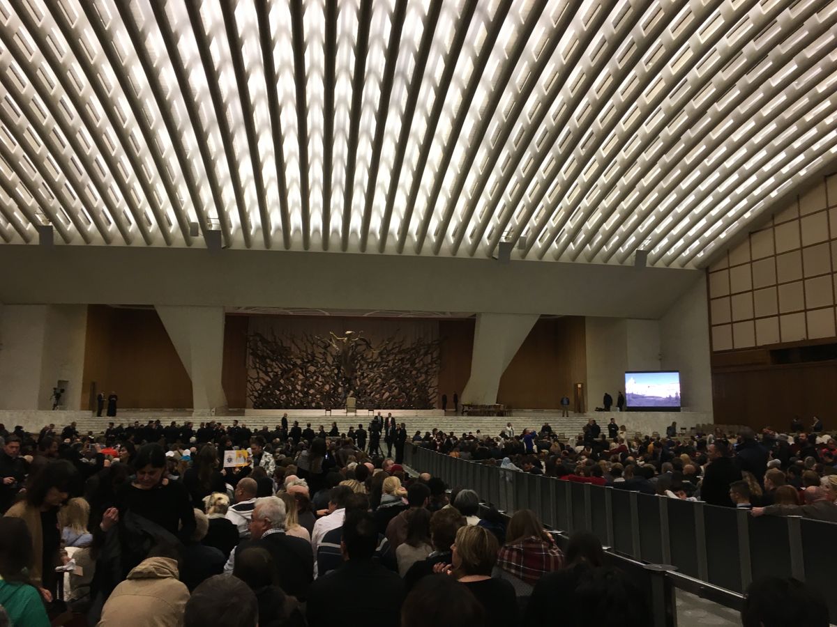 バチカンの観光が主な目的だった為ツアーに参加してみました。早朝ホテルでピックアップして貰いツアーデスクに集合、そこからバスが言語別で別れるので英語ガイドのバスに乗りました。添乗員さんがとても親切に誘導してくれるので言葉が分からなくても大丈夫だと思います。会場の席は決まっていなくて入るなり争奪戦が起きて少々驚きましたが運良く良い席を取れて真近で教皇様を見る事が出来ました。ただ東洋人=他宗教と思われているのかだいぶアウェーな雰囲気でした…(とはいえ特に何か言われた訳ではないので気にしなくても大丈夫です)ちょっと珍しい体験をしてみたい方にはお勧めです。