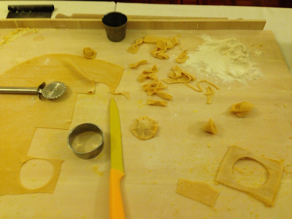 まず、自分の作ったパスタをいただくものではなかったです。パスタのこね方、パスタの種類を学ぶ講習会というようなものでした。粉と卵を合わせて、こねて、麺棒で伸ばして、切る。切り方も細さで違うパスタの種類を教えてもらい、いろいろなパスタを作ってみるというようなものでした。ゆでたり、味付けしたりする工程はありません。お店のオープン前の1時間での講習会というような感じでした。手取り足取りで熱心に教えてもらいありがたかったです。一緒に参加されていた他国の方とも作るのは各自ですが共に製作する感じがとても楽しかったです。また、パスタをこねる感覚や、伸ばし方、切り方などが日本でやっていることと同じかどうかを知ることができました。