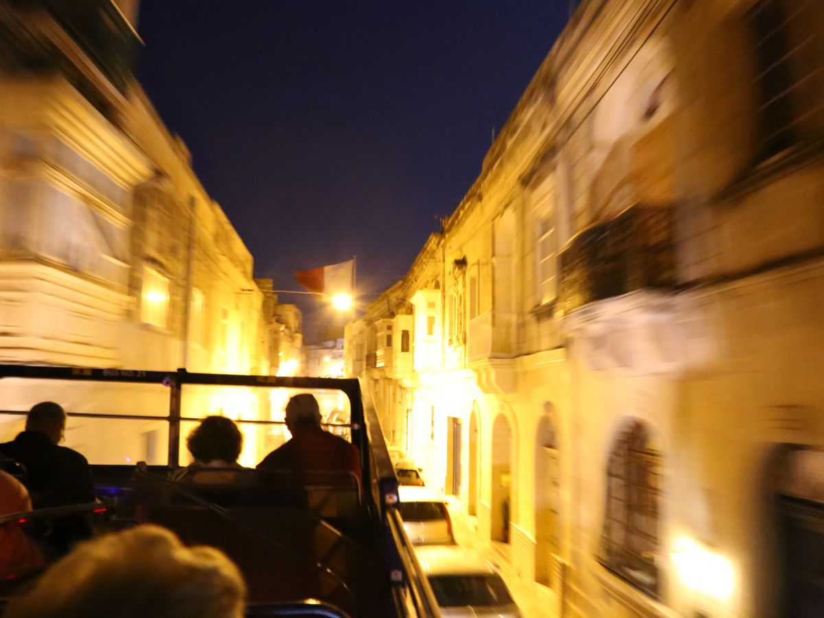 このツアーで問題があるとすれば、私たちの席は 日本語ガイドが1席壊れていて もう1席のイヤホンを左右2つに分けて 聞きました。それと帰りが 他のホテルを周って帰る(行きのpick upの順番との事です。当然私たちはセントジュリアンでpick upされたので 行きは最後の方でした)ので 帰りの時間が長く 結局ホテルに戻ったのは3時間後でした。でも、路地や海岸線(景色は暗くて見えません)を疾走して面白いなとは思いました。昼とは違う静粛の古都 イムディーナを気軽に散策するには安心のツアーと思います。
