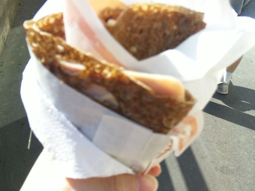マルシェも30分という限られた時間でしたが、塩の試食が出来たり、ガイドさんの手伝いのおかげで、チーズとハムのガレットを買う事ができ、マルシェらしいランチをとることもできました。