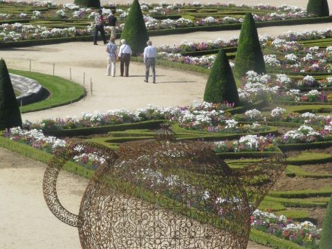 娘に誘われ二人旅!6日間の休暇なので限られた時間で効率よく回るためツアー3つ申し込みました。7/3(水曜日)皆さんの書き込みを参考にベルサイユ宮殿は午前中に、そして欲張りな私は朝市マルシェも行けるこのツアーを申し込みました。〈ベルサイユ宮殿は自力でも行ける…〉と旅行誌には書いていいますが、乗換とか考えるとツアーバスの方が乗っていれば連れて行ってくれるし自分で行くより多少(多分¥1500位)割高でも労力やマルシェも行けたことを考えると得した感じです。