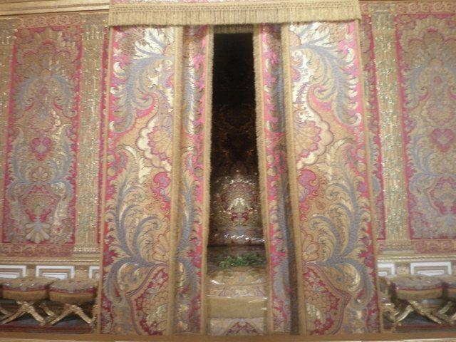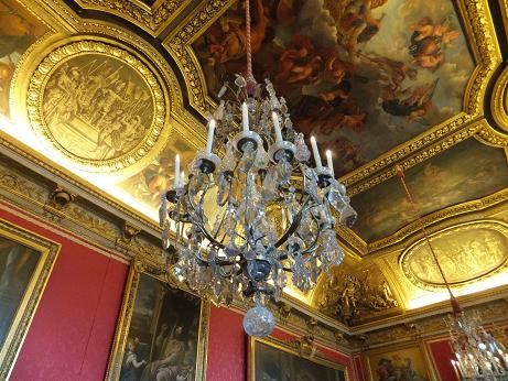 ベルサイユ宮殿内を,朝一番から見学できたので,それほど混雑も気になりませんでした.鏡の間のあたりで後からどんどん人が増えたので,ちょっと他より早く入館できたのだと思います.さすがにこの時間内では庭園は少し見ただけでしたが,時間が足りないという印象ではありませんでした.宮殿内の売店で,バラのジャムとラデュレのマカロンを買いましたが,その後で行ったマルシェで,よいお土産がたくさんありました.塩キャラメルのソース(小さい瓶,1つ2ユーロ)や,フォアグラのパテの缶詰も買いました(現地価格?他よりずっと安かったです.).果物やお昼に食べるお惣菜も買うことができて大満足でした.このマルシェ寄り道は意外と点数が高いと思いました.