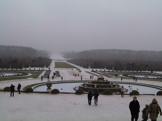 私は訪れるのが2回目でしたので本来の姿と比較しながら見学しましたが、妻は初めてでしたので「この不真面目さは何??、これがベルサイユ宮殿??、こんな姿にしていいの?」っていう感じで落胆してました。冬の庭園はオフシーズンで寂しかったですが、一面雪に覆われ、それはそれできれいでした。