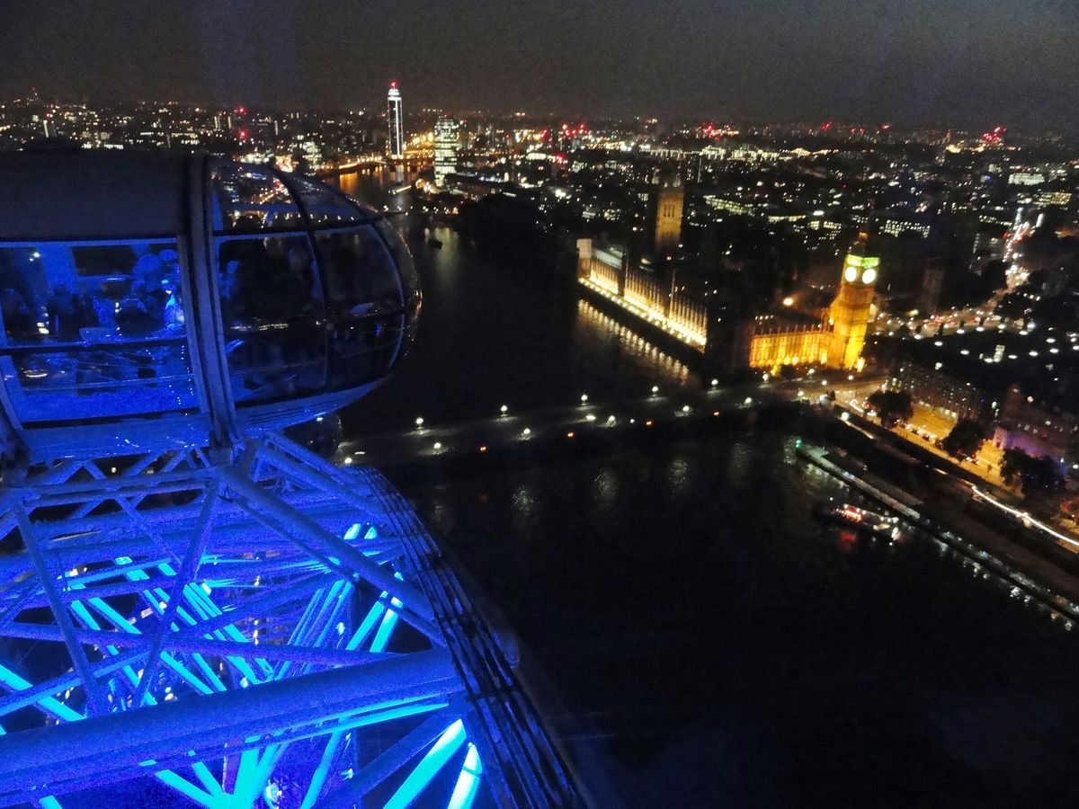 12月の夜にロンドン・アイに乗りました。結構列が出来ていて並びましたが確か30分くらいで乗れたと思います。ロンドンの夜景がと~っても綺麗で並んだかいありました。観覧車を大きくした感じのものなので、1つの箱に一気に20人くらい入ります。全部透明でできているので見渡すとこ全部綺麗でした!!