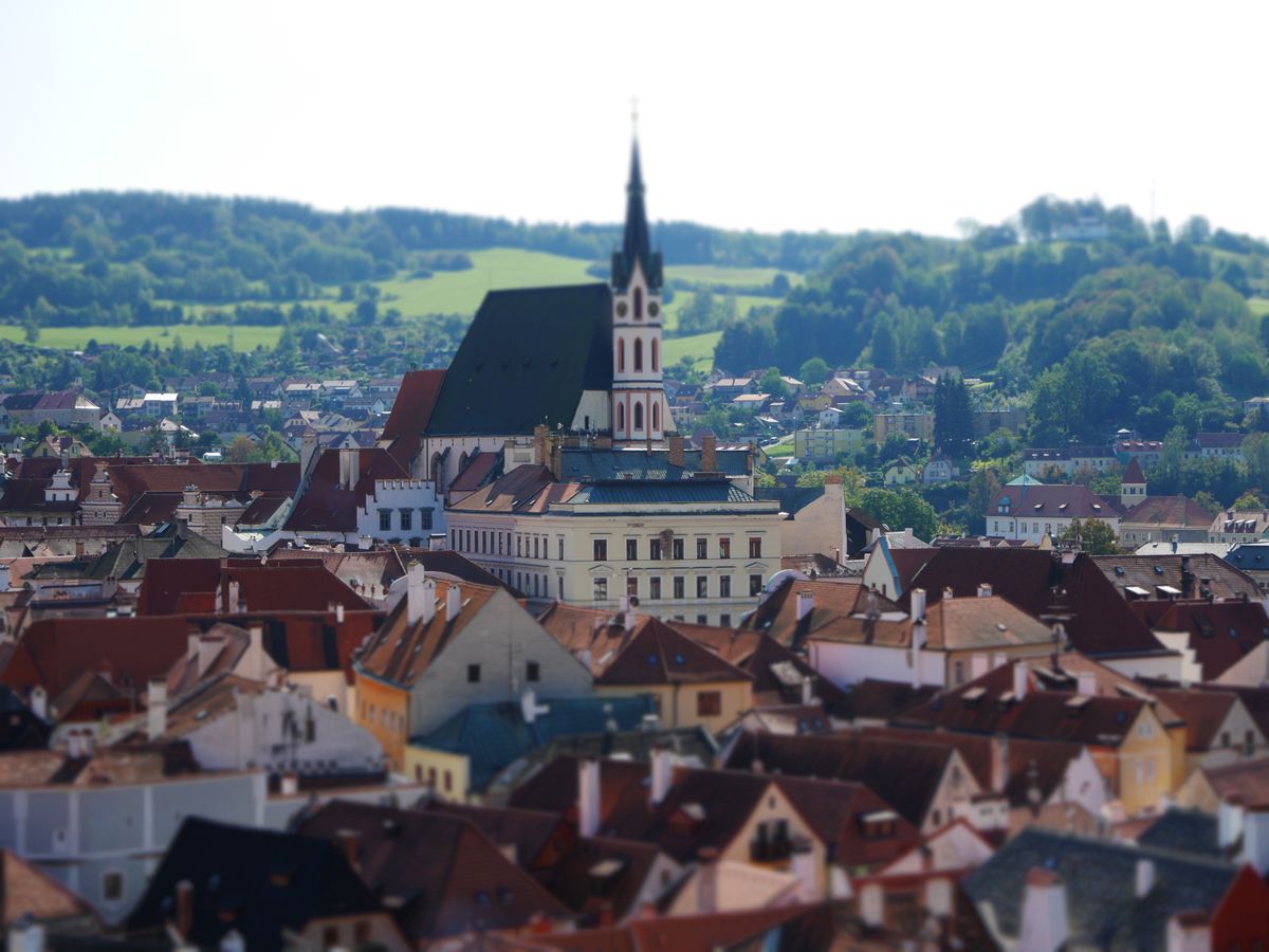 集合時間ちょうどにホテルのロビーに降りていくと、わざわざ名前を書いた紙を持って待っていていただきました。ホテルから1時間15分ほどでターボルの街に到着して観光しますが、別料金で教会の尖塔にも上がることができ、街並みを俯瞰することができました…