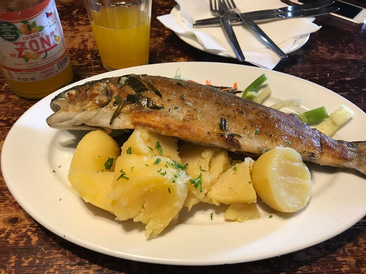チェスキー・クロムロフでは最初天気が今一つでしたが、後半はくっきりと晴れて、美しい街並みを堪能しました。ランチのマス料理も、川魚好きとしては美味しくいただきました。