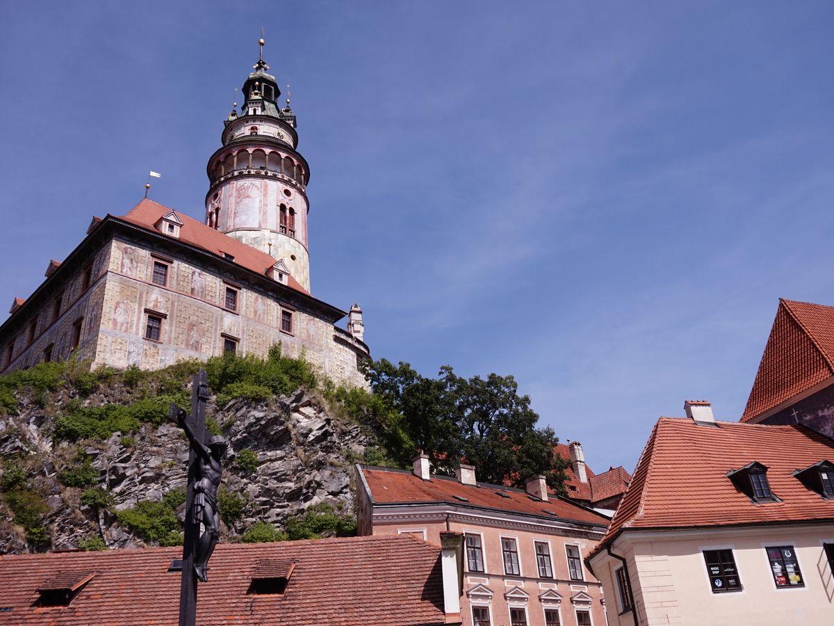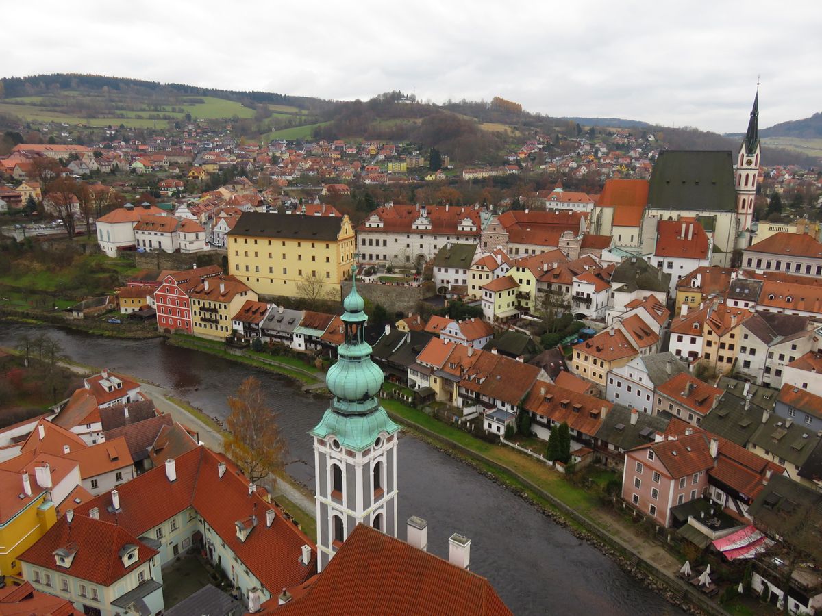 まずホテルに迎えが来て、何ヶ所か回ってピックアップした参加者たちを、ツアー会社の待ち合い場所にかき集め、方向別にバス乗りわけて出発。ガイドのおじさんはチェコ人で巻き舌英語。まぁ伝わらないことはない。高速を飛ばし、途中トイレ休憩を挟んでチェスキークルムロフに到着。