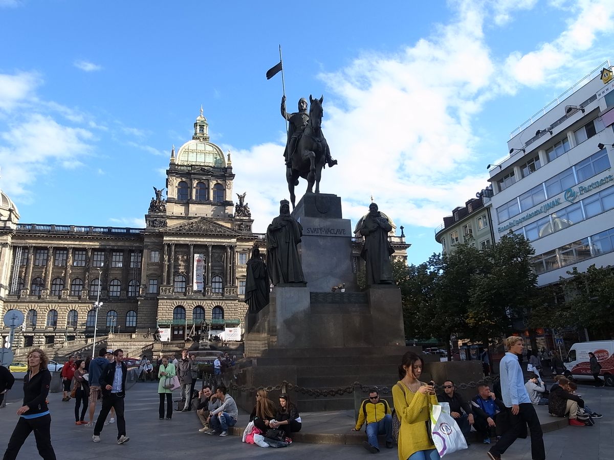 ガイドはミカエルさんという現地(おそらく)の女性の方でした。日本語は非常に流暢でお互いに冗談を言い合って通じるレベルです。待ち合わせ場所のヴァーツラフ広場(Vaclavske nam)の騎馬像前に行くと、参加者の名前(ローマ字)を印刷した紙を持って待っていました。今回はミカエルさん含めて総勢6名です。開始後はプラハ城へ向かう為のトラム乗り場への徒歩移動がはじまりますが、ガイドブックでは触れないようなちょっとしたポイントでも足を止めて説明を入れてくれました。参加者の中にはミカエルさんの説明をあまり聞かずに写真を撮るのに夢中になっている方もいましたが、このツアーは彼女の事細かい説明が醍醐味だと思います。