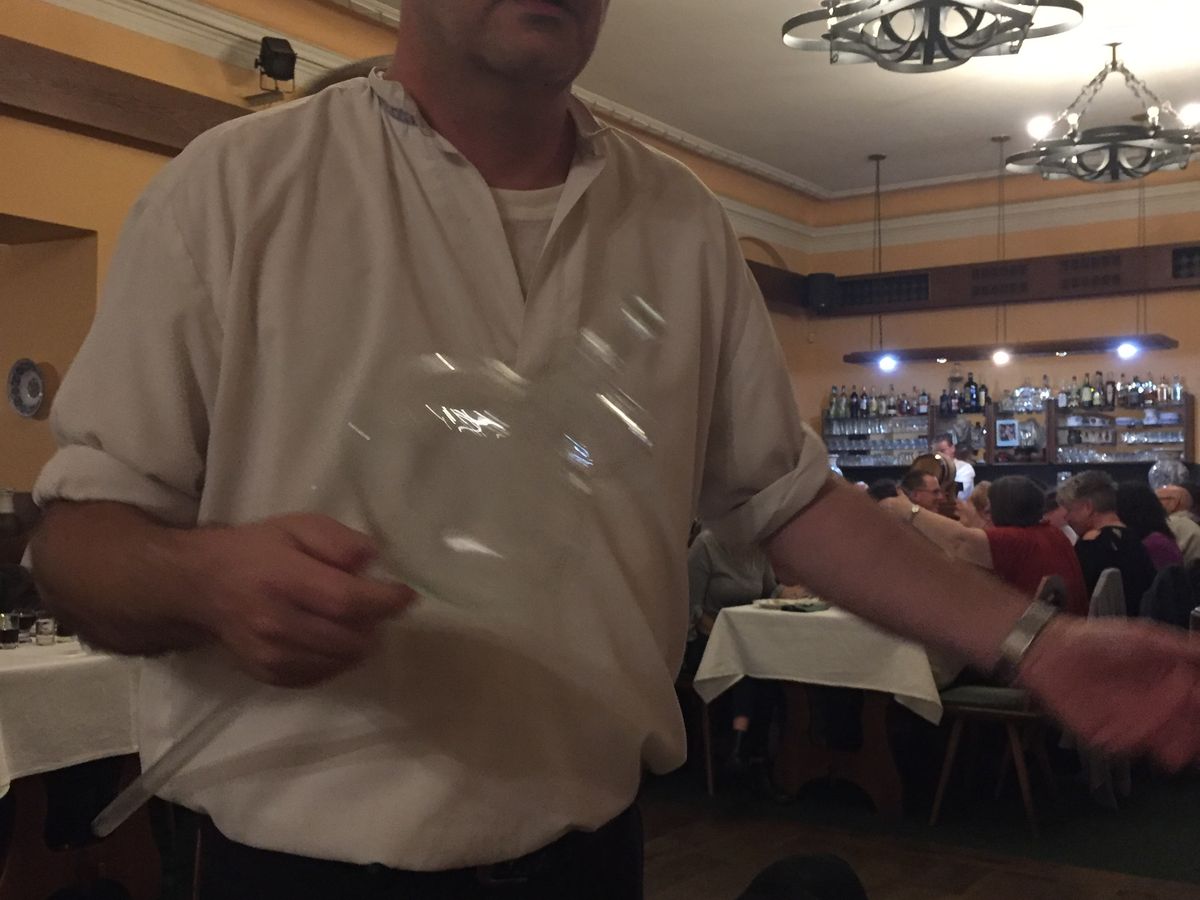 イケメンが時間通りお迎えが来ました。100人位入れるレストラン会場 アットホームな雰囲気で演奏が始まります。伝統的なダンスの方と司会の女性が、歌を教えてくれ 参加型でみんなで楽しむステージでした。伝統的なワインの注ぎ方も見る価値あり。ワイワイ楽しみたい方は是非オススメです