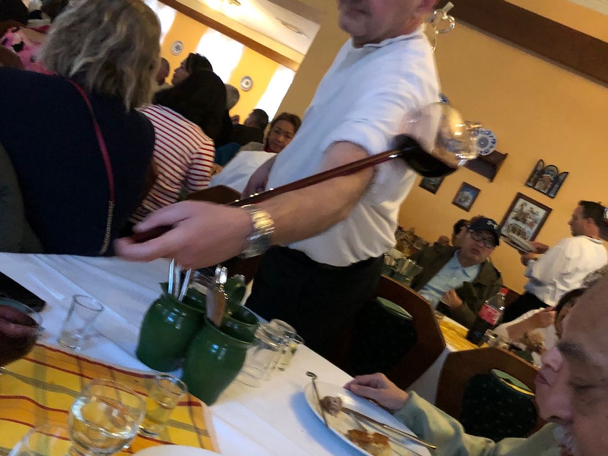 ワインはグラスになくなると何度でも注いでくれますが、給仕の人が忙しくて
