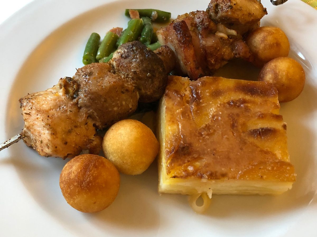 料理は最初のポテトサラダはまあまあ、メインは口に合わずデザートも